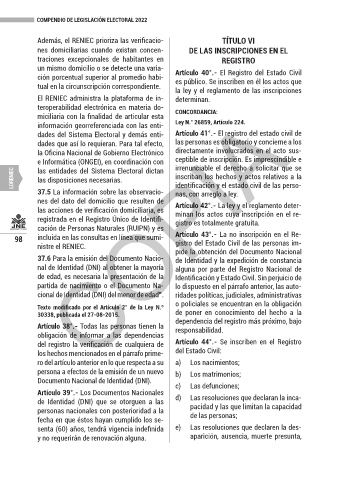 Page 98 - COMPENDIO DE LEGISLACIÓN ELECTORAL 2020 - JNE