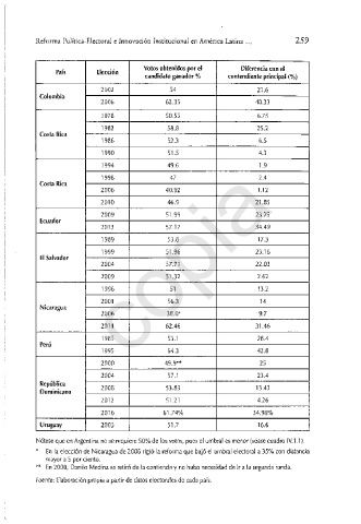Page 259 - REFORMA POLÍTICO-ELECTORAL E INNOVACIÓN INSTITUCIONAL EN AMERICA LATINA (1978-2016) - DANIEL ZOVATTO