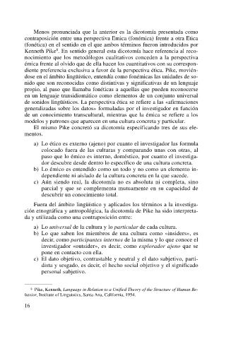 ción etnográfica y antropológica, la dicotomía de Pike ha sido interpreta-