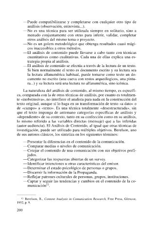investigación, puede ser utilizado para múltiples objetivos. Berelson, uno