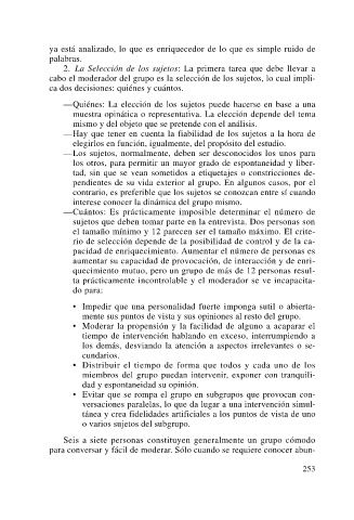 cabo el moderador del grupo es la selección de los sujetos, lo cual impli-