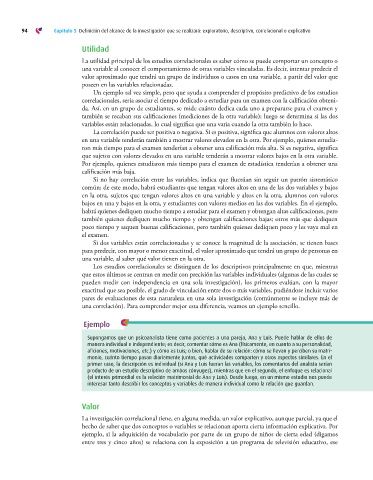 correlacionales, sería asociar el tiempo dedicado a estudiar para un examen con la calificación obteni-