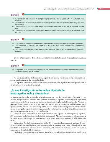 ¿En una investigación se formulan hipótesis de investigación, nula y alternativa? 115