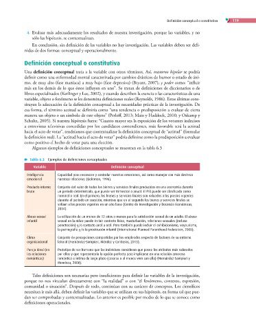 Algunos ejemplos de definiciones conceptuales se muestran en la tabla 6.3
