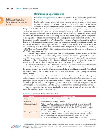 Algunos ejemplos de definiciones operacionales se incluyen en la tabla 6.4 (se muestran única-