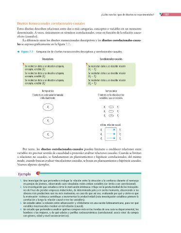 Figura 7.7 Comparación de diseños transeccionales descriptivos y correlacionales-causales.