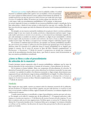 los racimos siguiendo los pasos ya señalados de una muestra probabilística simple o estratificada. En las