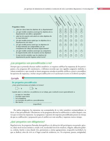 vez que se tienen las respuestas. Las preguntas y opciones de respuesta precodificadas poseen la ventaja