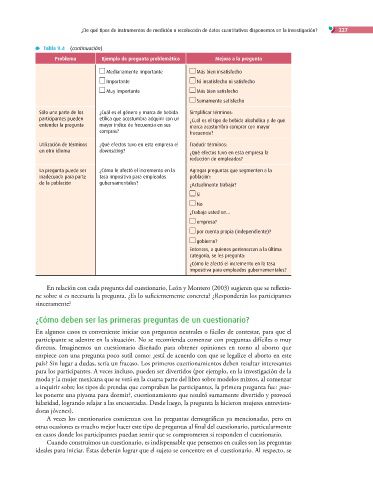 En relación con cada pregunta del cuestionario, León y Montero (2003) sugieren que se reflexio-