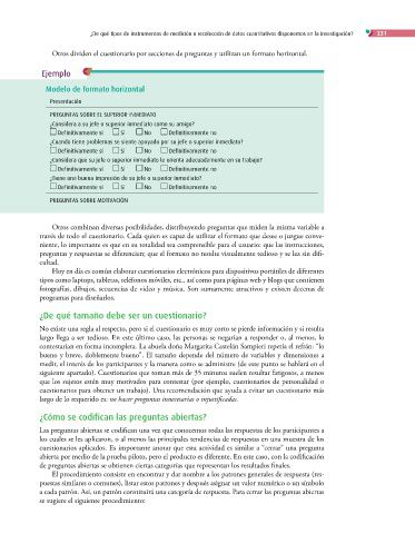través de todo el cuestionario. Cada quien es capaz de utilizar el formato que desee o juzgue conve-