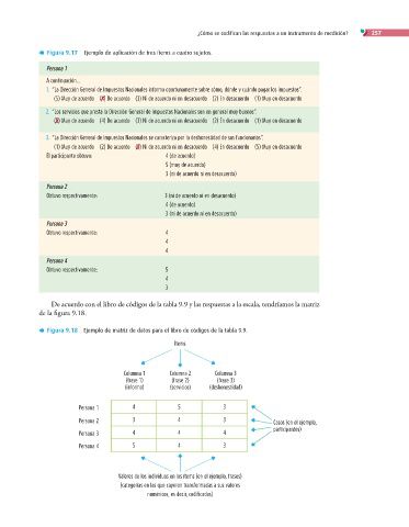 De acuerdo con el libro de códigos de la tabla 9.9 y las respuestas a la escala, tendríamos la matriz