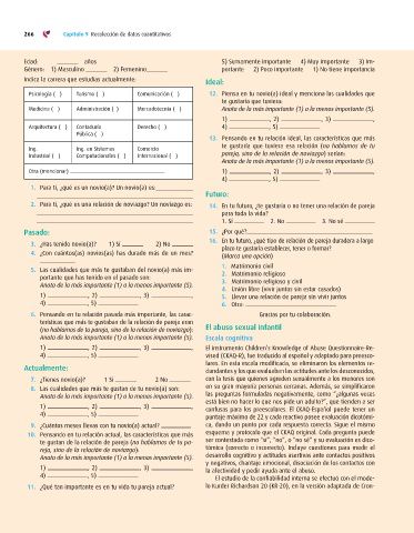 reja, sino de la relación de noviazgo): tómica (correcto o incorrecto). Incluye cuestiones para medir el