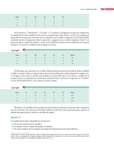 el nombre de la nueva variable (en este caso la compuesta por cinco frases): moral. Y nos solicita que