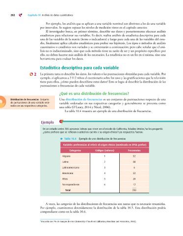 Tabla 10.4 Ejemplo de una distribución de frecuencias