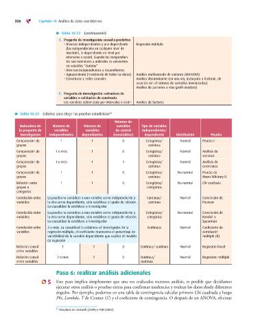 Tabla 10.23 Criterios para elegir las pruebas estadísticas 34