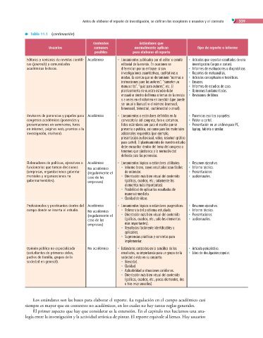 Antes de elaborar el reporte de investigación, se definen los receptores o usuarios y el contexto 339