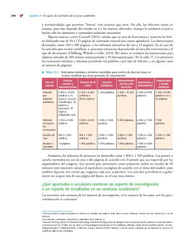 Tabla 11.2 Extensiones mínimas y máximas permitidas para escritos de diversas clases en