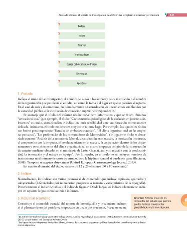 Antes de elaborar el reporte de investigación, se definen los receptores o usuarios y el contexto 341