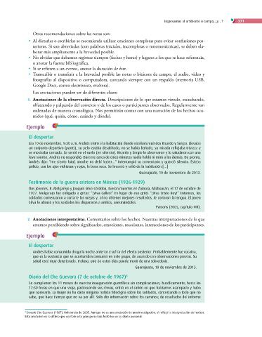 1. Anotaciones de la observación directa. Descripciones de lo que estamos viendo, escuchando,