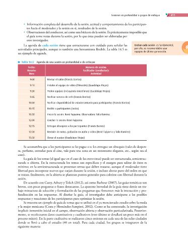 Tabla 14.5 Agenda de una sesión en profundidad o de enfoque