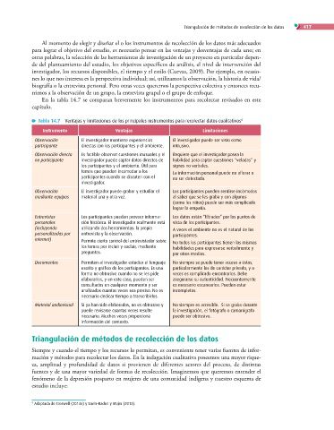 Tabla 14.7 Ventajas y limitaciones de los principales instrumentos para recolectar datos cualitativos 8