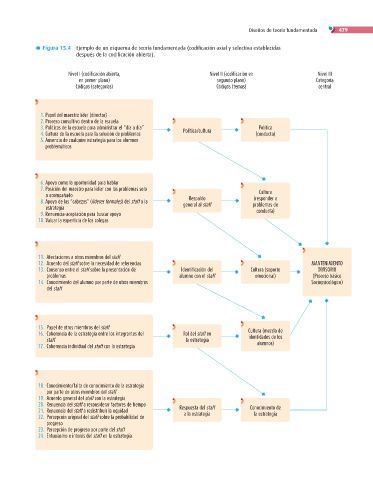 Figura 15.4 Ejemplo de un esquema de teoría fundamentada (codificación axial y selectiva establecidas