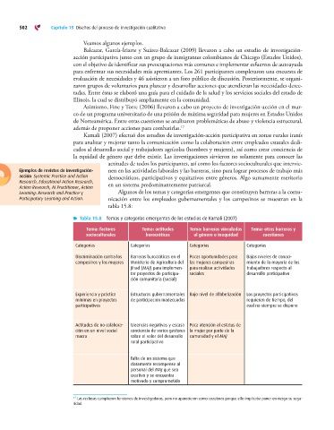 Tabla 15.8 Temas y categorías emergentes de los estudios de Kamali (2007)