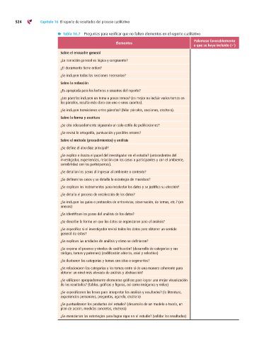 Tabla 16.7 Preguntas para verificar que no falten elementos en el reporte cualitativo