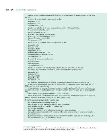 Algunos de los resultados demográficos fueron los que a continuación se señalan (Álvarez-Gayou, 2005,