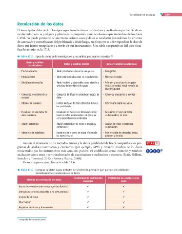 Tabla 17.5 Tipos de datos en la investigación y los análisis pertinentes a realizar 24