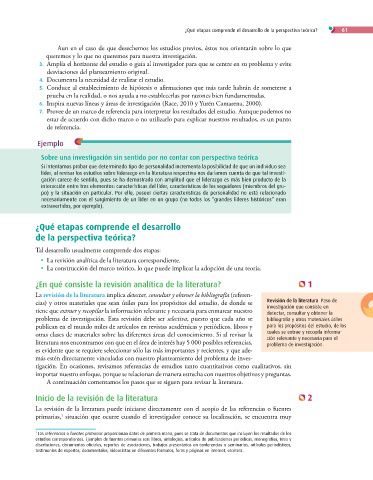 ¿Qué etapas comprende el desarrollo de la perspectiva teórica? 61