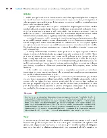 correlacionales, sería asociar el tiempo dedicado a estudiar para un examen con la calificación obteni-