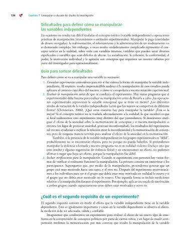 1. Consultar experimentos antecedentes para ver si fue exitosa la forma de manipular la variable inde-