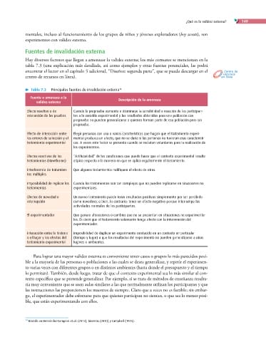 Tabla 7.3 Principales fuentes de invalidación externa 14