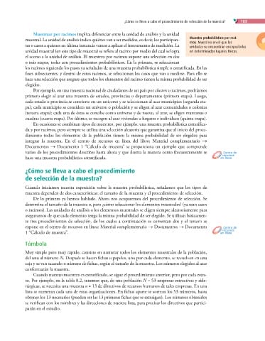 los racimos siguiendo los pasos ya señalados de una muestra probabilística simple o estratificada. En las