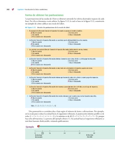 Figura 9.13 Muestra de puntuaciones de la escala de Likert.