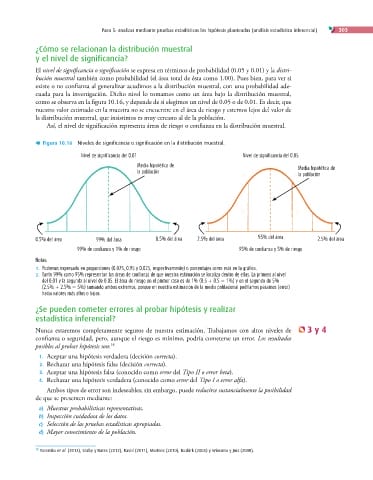 Figura 10.16 Niveles de significancia o significación en la distribución muestral.