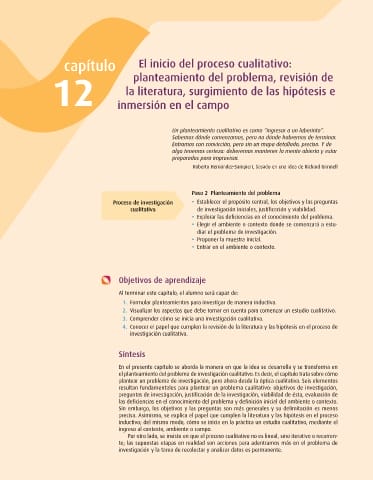 el planteamiento del problema de investigación cualitativo. Es decir, el capítulo trata sobre cómo