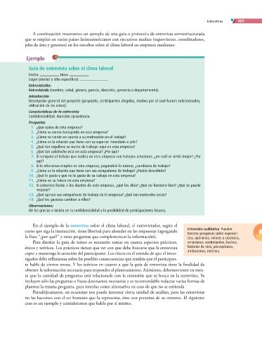 En el ejemplo de la entrevista sobre el clima laboral, el entrevistador, según el