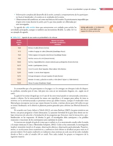 Tabla 14.5 Agenda de una sesión en profundidad o de enfoque