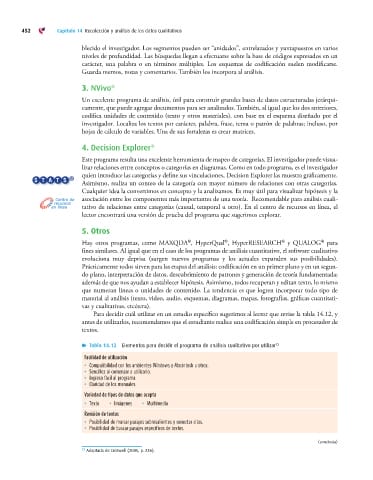 Tabla 14.12 Elementos para decidir el programa de análisis cualitativo por utilizar 23