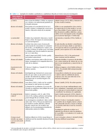 Tabla 1.3 Ejemplos de estudios cuantitativos y cualitativos dirigidos al mismo tema de investigación