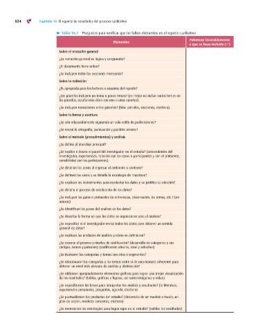 Tabla 16.7 Preguntas para verificar que no falten elementos en el reporte cualitativo