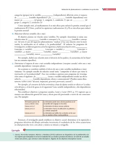 vinientes. Un ejemplo sencillo de relación causal sería: “comprobar el efecto que tiene la